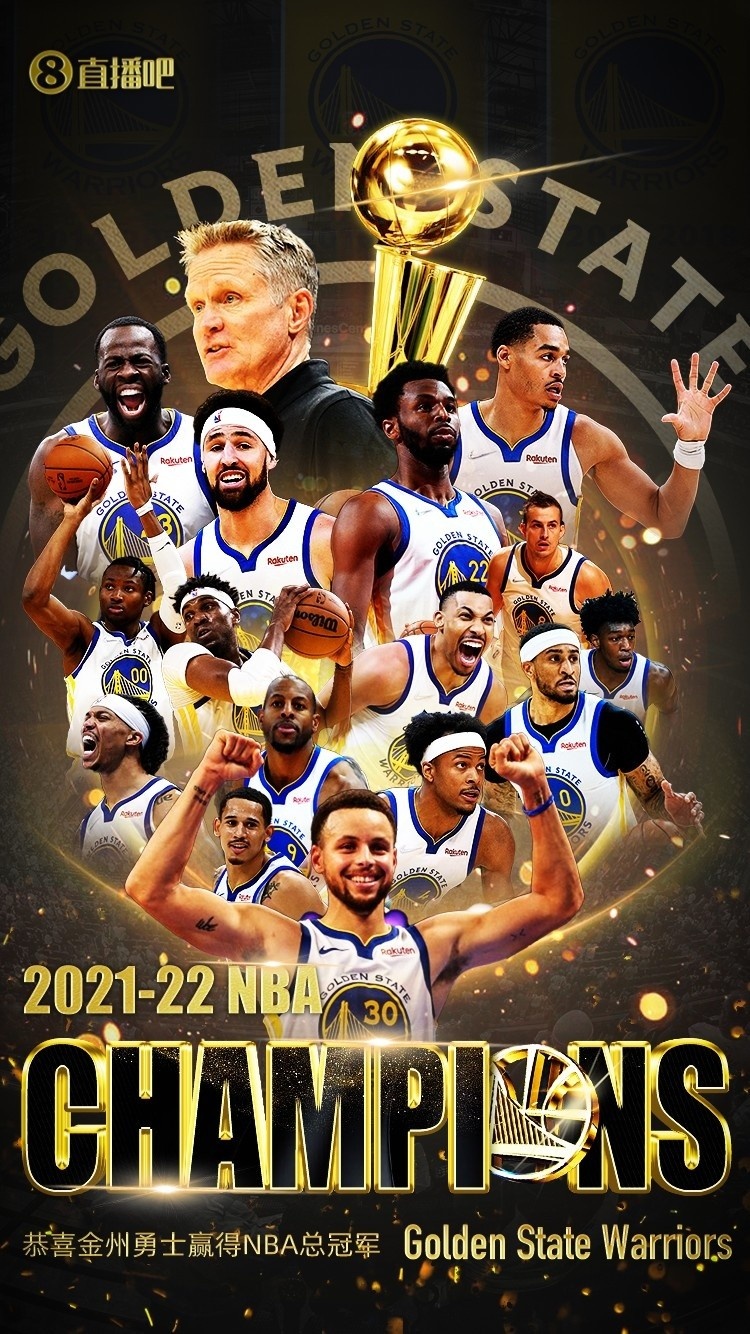 6月17日讯 今日勇士击败绿军,大比分4-2获得2021-22赛季NBA总冠军!