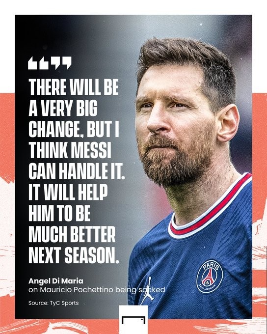 在被问到“波切蒂诺可能会被解雇”的话题时,迪马利亚表示:“看起来他们也想要教练离开。巴黎将会出现很大的变动,但我认为梅西能够处理好这一切。这将会帮助梅西在下赛季踢得更加出色。”